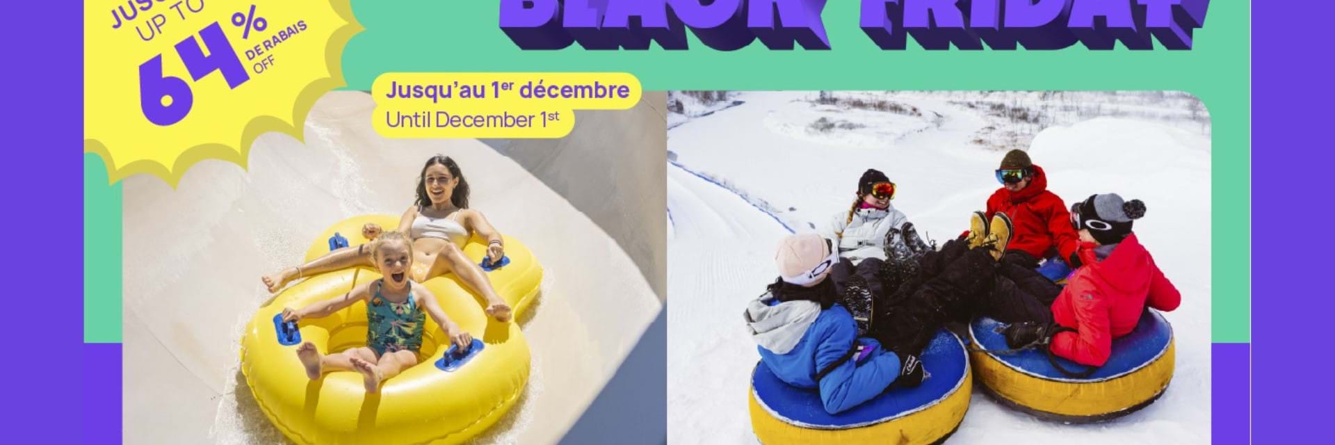 From November 26 to December 1, enjoy irresistible offers on our activities, season passes, and more. It’s the perfect time to plan for winter… or start dreaming of summer. Hurry — these exceptional prices are available for a limited time only.