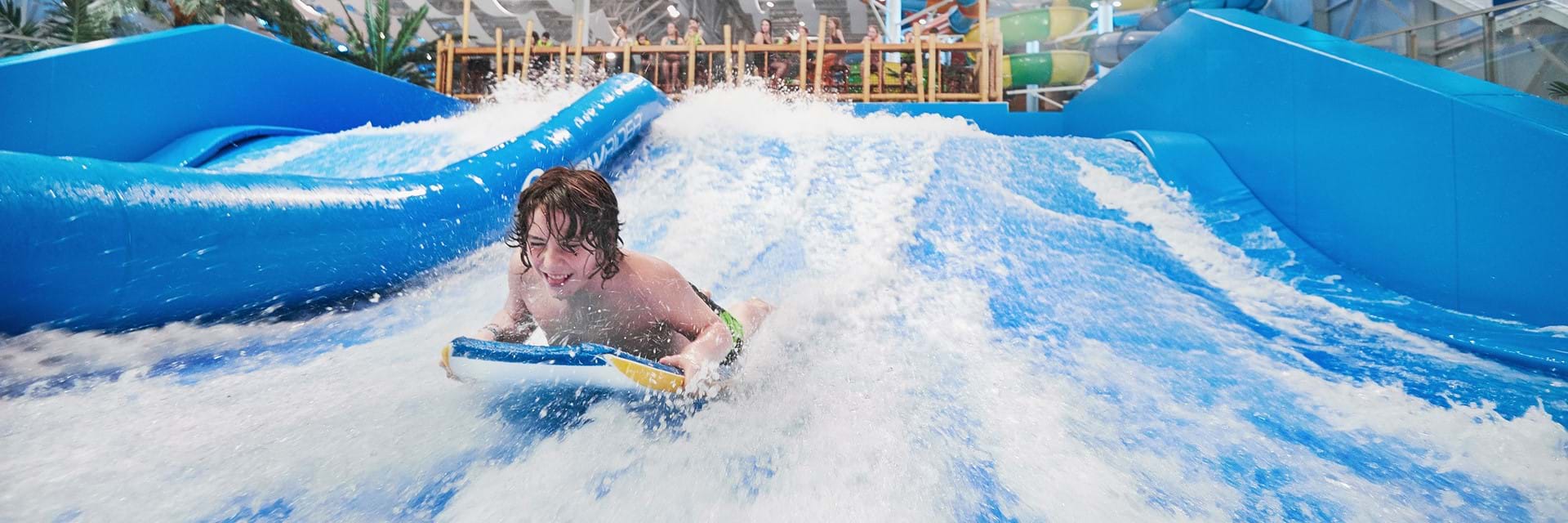 Jump on your board and test your surfing skills on our double surf wave! Enjoy the awesome feeling of surfing a perfect wave every time. You will have as much fun taming the wave as watching your friends try it out.