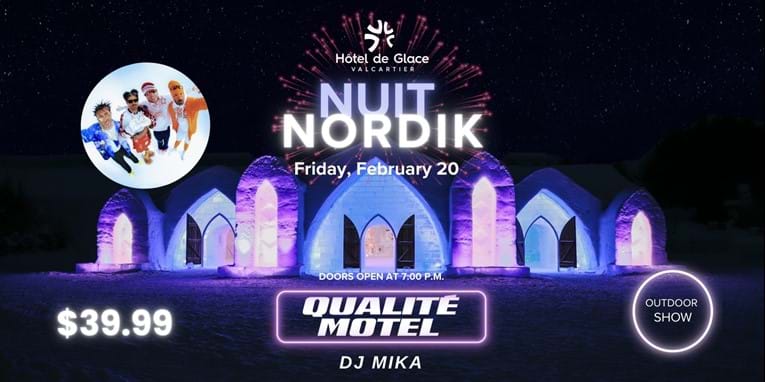 On February 20, this electro-pop energy takes over the Hotel de Glace for an outdoor show set against the most stunning — and one-of-a-kind — illuminated ice façade. An icy setting, but a dancefloor that promises to be on fire.
