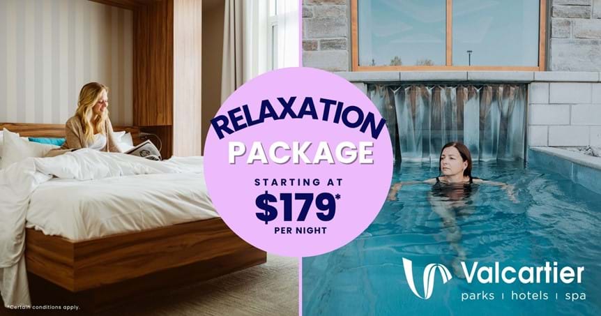 Let yourself be wrapped in the gentle ambiance of spring and enjoy an unforgettable relaxation getaway at Hôtel Valcartier. Whether you're looking to disconnect from daily life, share a special moment together, or simply take time for yourself, this package has everything you need.