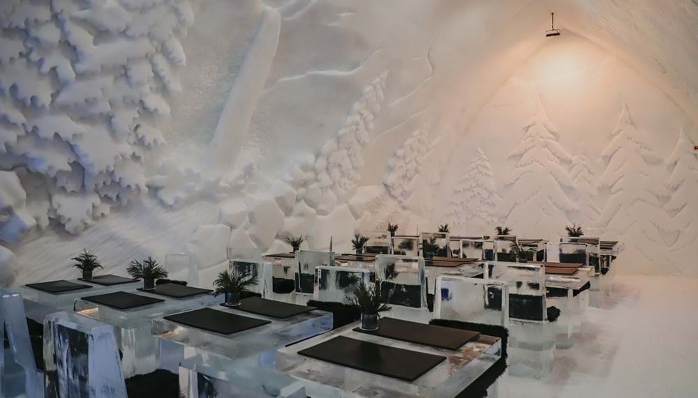 Experience something truly extraordinary at the Hôtel de Glace (ice hotel). Treat yourself to a gourmet evening in a setting entirely sculpted from ice and snow.