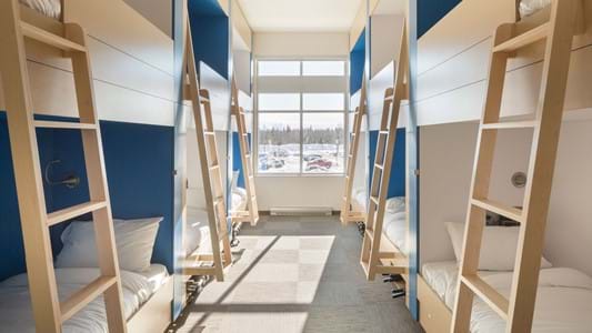 - Dorm room including 12 separate beds located in a private area of the Hotel Valcartier