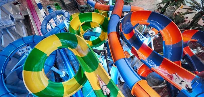 Votre duo s'engage dans le tunnel alors que le vent se lève. La tempête tropicale approche! Les rafales tourbillonnantes vous conduisent dans une série de courbes et de virages. Les éclairs illuminent le ciel pendant que vous virevoltez dans la descente. L'orage vous amènera même faire quelques tours à l'extérieur avant de vous ramener vers le lagon. Heureusement, le beau temps est déjà de retour!