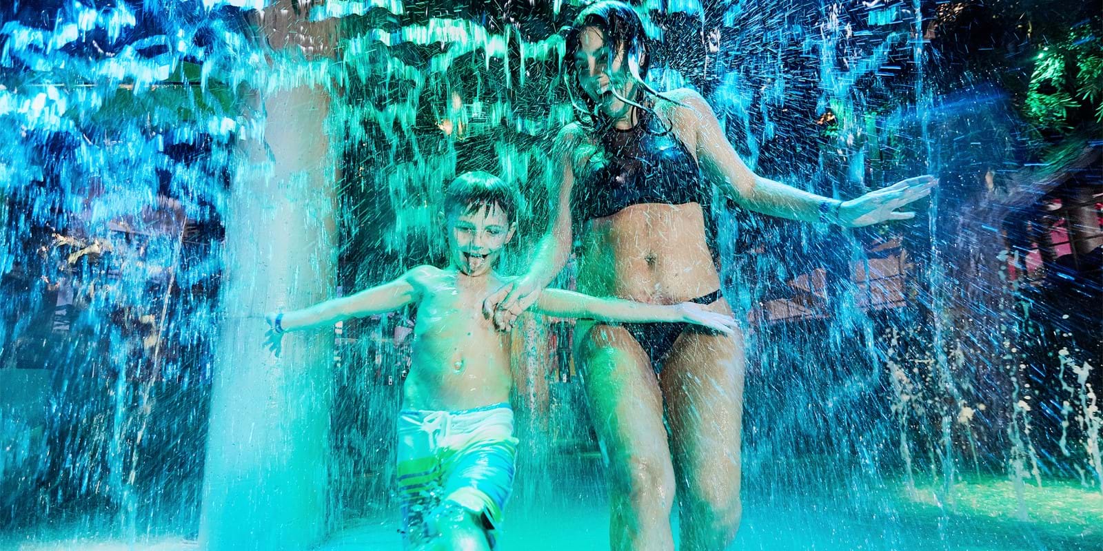 Vous entrez au coeur d'une forêt magique digne d'un conte de fées... où vous serez éclaboussé de la tête aux pieds! L'ambiance envoûtante des jeux de lumière, une mini glissade et des jeux d'eau interactifs vous attendent dans cet univers enchanteur conçu pour les tout-petits.