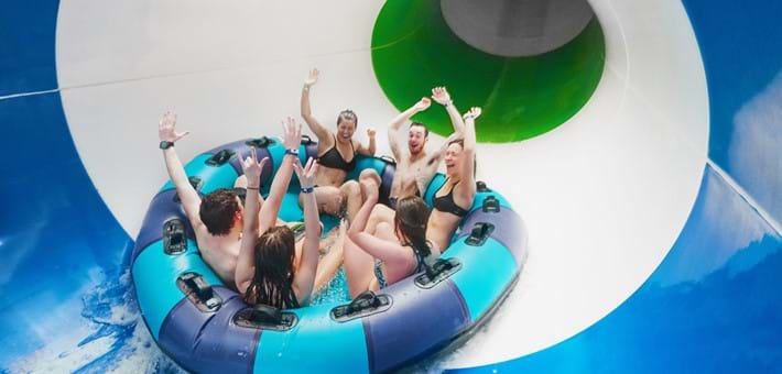 Installez-vous confortablement sur votre bouée et laissez-vous porter par les courants tropicaux de l'Océanie. Le lagon limpide vous transporte à travers les beautés de cette île paradisiaque. Sous le couvert de palmiers luxuriants, amusez-vous à déjouer les bassins qui risquent à tout moment de vous éclabousser. Derrière la cascade qui se dresse devant vous, une grotte de pierres à la voûte luminescente vous réserve un fabuleux spectacle tout en couleurs. Une légende polynésienne raconte que certains jours, les courants de la rivière s'accélèrent.