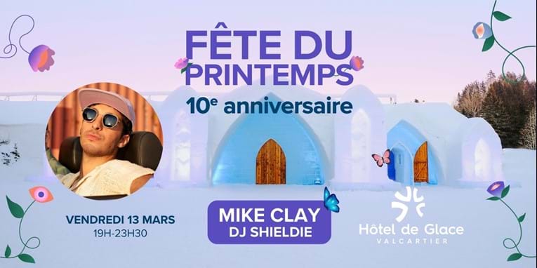 L’Hôtel de Glace prend vie tout l’hiver… mais il sait aussi célébrer l’arrivée du printemps en grand avec Mike Clay! Personne ne groove comme lui, il sera le soleil de votre printemps.