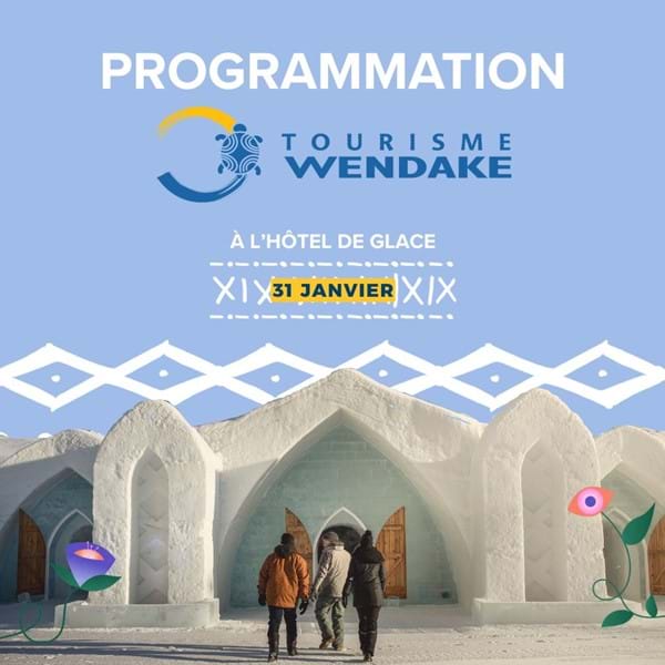 Cette année, l’Hôtel de Glace s’ancre encore plus profondément dans le territoire qu’il habite en renouvelant sa collaboration avec Tourisme Wendake. Une journée culturelle exclusive vous est proposée, mettant en lumière les traditions, l’art et les récits de la Nation Wendat. À travers des activités immersives, les visiteurs seront invités à découvrir un patrimoine riche et vivant, au cœur de la féérie glacée.