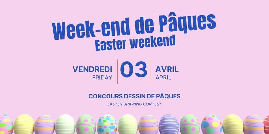 Joignez-vous à nous pour un week-end festif entièrement dédié à la magie de Pâques. Au programme: des activités créatives, des jeux amusants et des moments inoubliables pour petits et grands. Profitez d’une ambiance chaleureuse où rire, couleurs et surprises sont au rendez-vous.