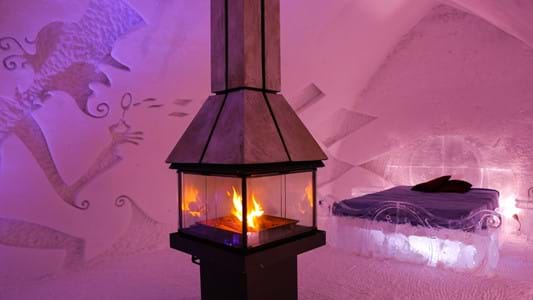 Appréciez la fascinante dualité entre le feu et la glace dans ces suites somptueuses. Spécialement conçus pour l’Hôtel de Glace, les foyers ajoutent une touche de magie et une ambiance unique à votre suite. Ce forfait comprend :