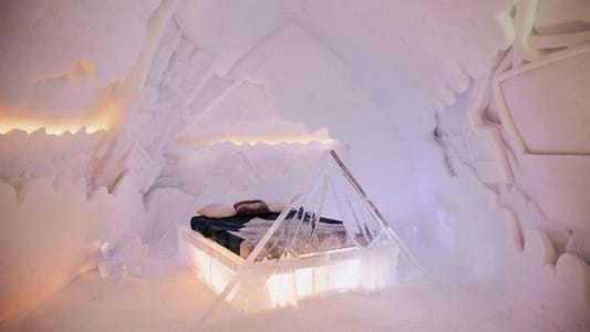 Véritable œuvre d’art, les suites thématiques étonnent par leur design unique et leur ambiance particulière. Les sculptures de glace ou de neige rehaussées d'un éclairage artistique tamisé vous promettent une nuit inoubliable. Ce forfait comprend :