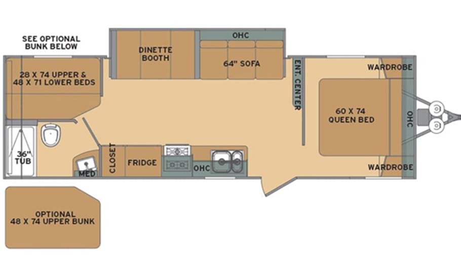 - Une seule unité disponible, lit double superposé d'un lit simple (literie non incluse)