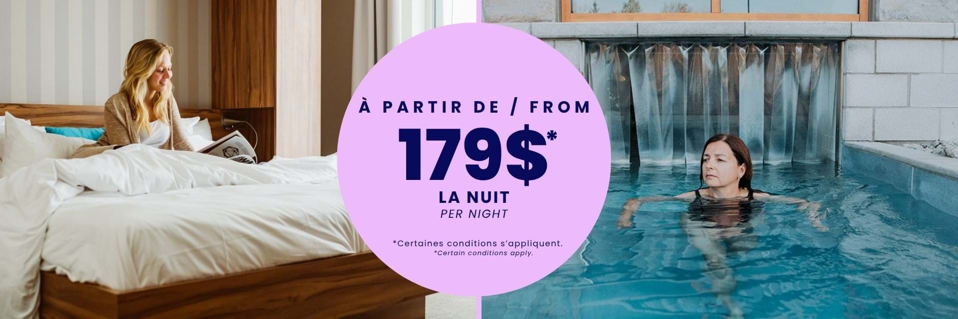 À partir de seulement 179$ par nuit, profitez d’une expérience complète alliant confort, bien-être et gastronomie.